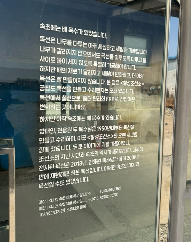 그때의 기록이 궁금하다면 👉 2022년 속초 칠성조선소 방문기 에서 확인하실 수 있어요 :)”